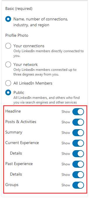 另外如果你是登录使用的领英职场版本,则必须记得在设置和隐私内,开启你的档案显示功能。因为如果你不开启,你的档案在领英将会无法被搜索和查看。